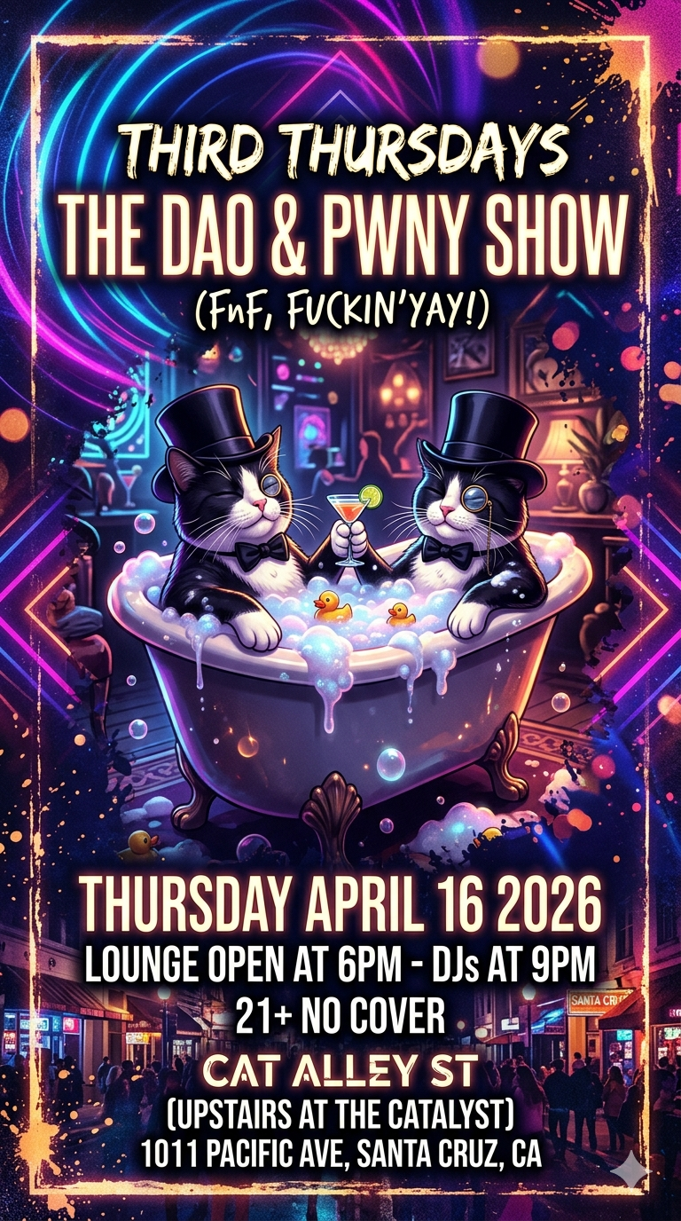 It’s time again to dip our paws into the sonic sandbox that is Dao & Pwny — they have over 50 years of combined music collecting and disc-spinning passion, so you know that genres shall be jumped, moods mixed, and vibes vortexted during this all-night tag team jam.
